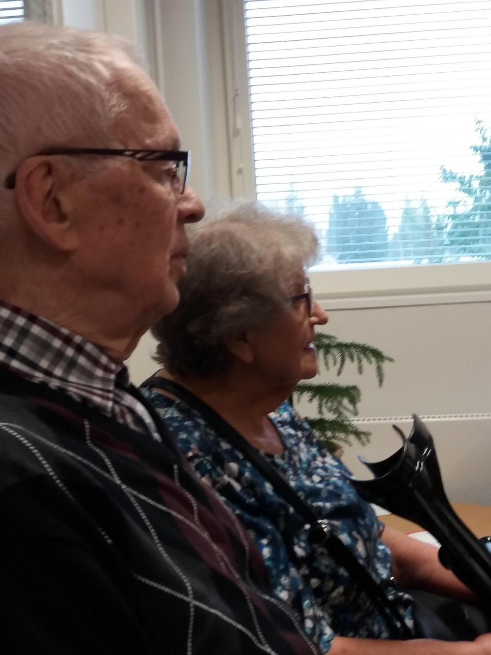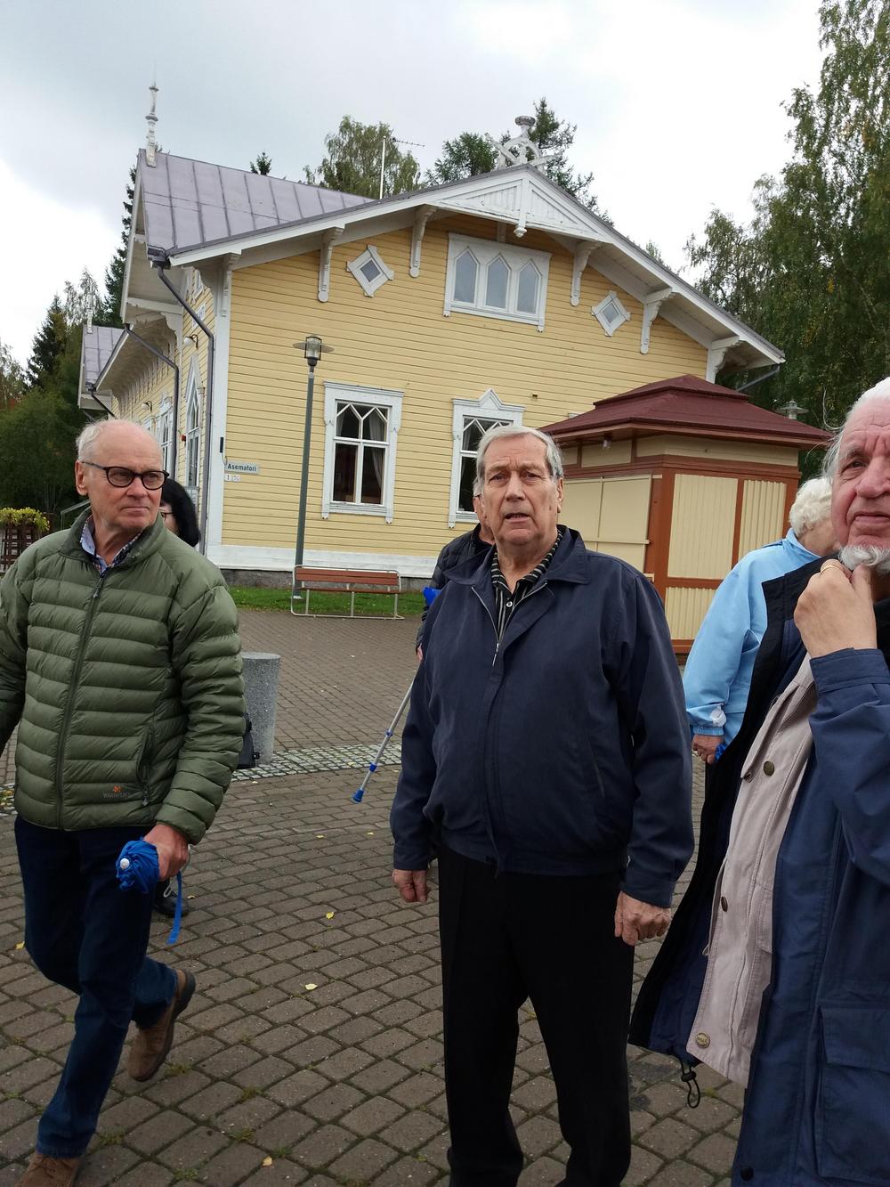 Suolahden Wanhan Aseman historiaan tutustumassa Ahti ja Helena Ojasen johdattelemana.