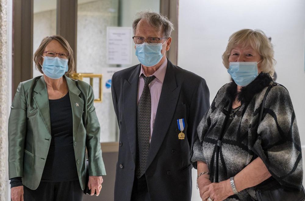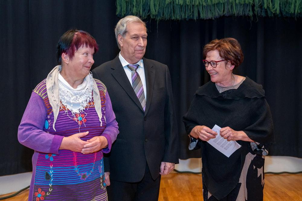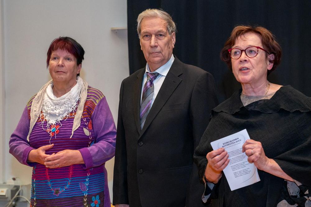 Juhlan järjestäneen kolmen senioriyhdistyksen, Karstulan, Äänekosken ja Saarijärven, "Dynastian", juhlatoimikunnan edustajat Eila Sallinen, Ahti Ojanen ja Arja-Leena Peiponen kiittivät vieraita. Kuva Leena Aijasaho