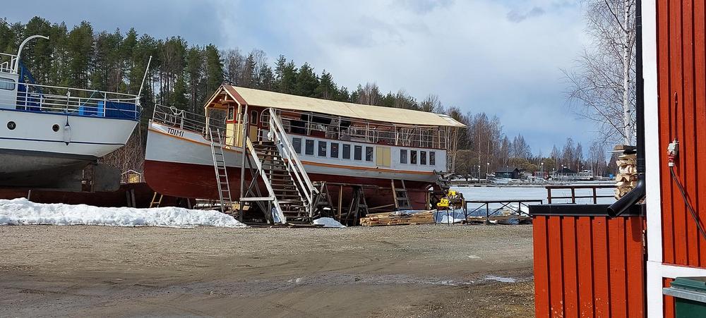 Suolahden Perinnetelakalla tukikohtaisäntä Pekka Pulkkinen esitteli laivat ja Tementia-kerhon toimintaa siellä, mm alusten kunnostamistyötä.