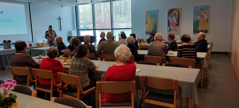 Kuukausitapaamisessa 20.4. Harri Jaakkolalla aiheena oli "Ajatuksia ajankohtaisuudesta" ja Tuire Tuittula opasti 72 tunnin kotivarasta.