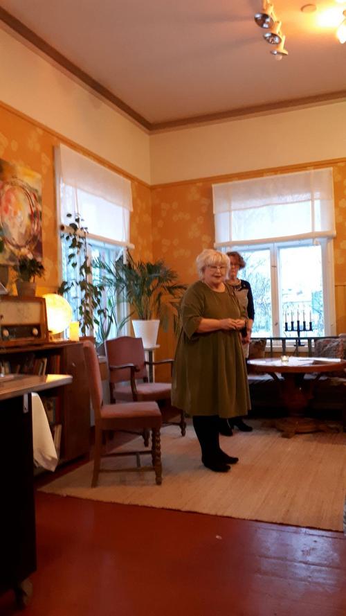 Kahvit joimme retken päätteeksi Wille - Olohuone ja keittiössä. Timo Honkonen kertoi paikan historiaa.
