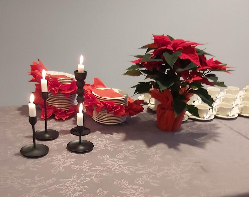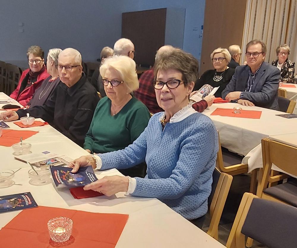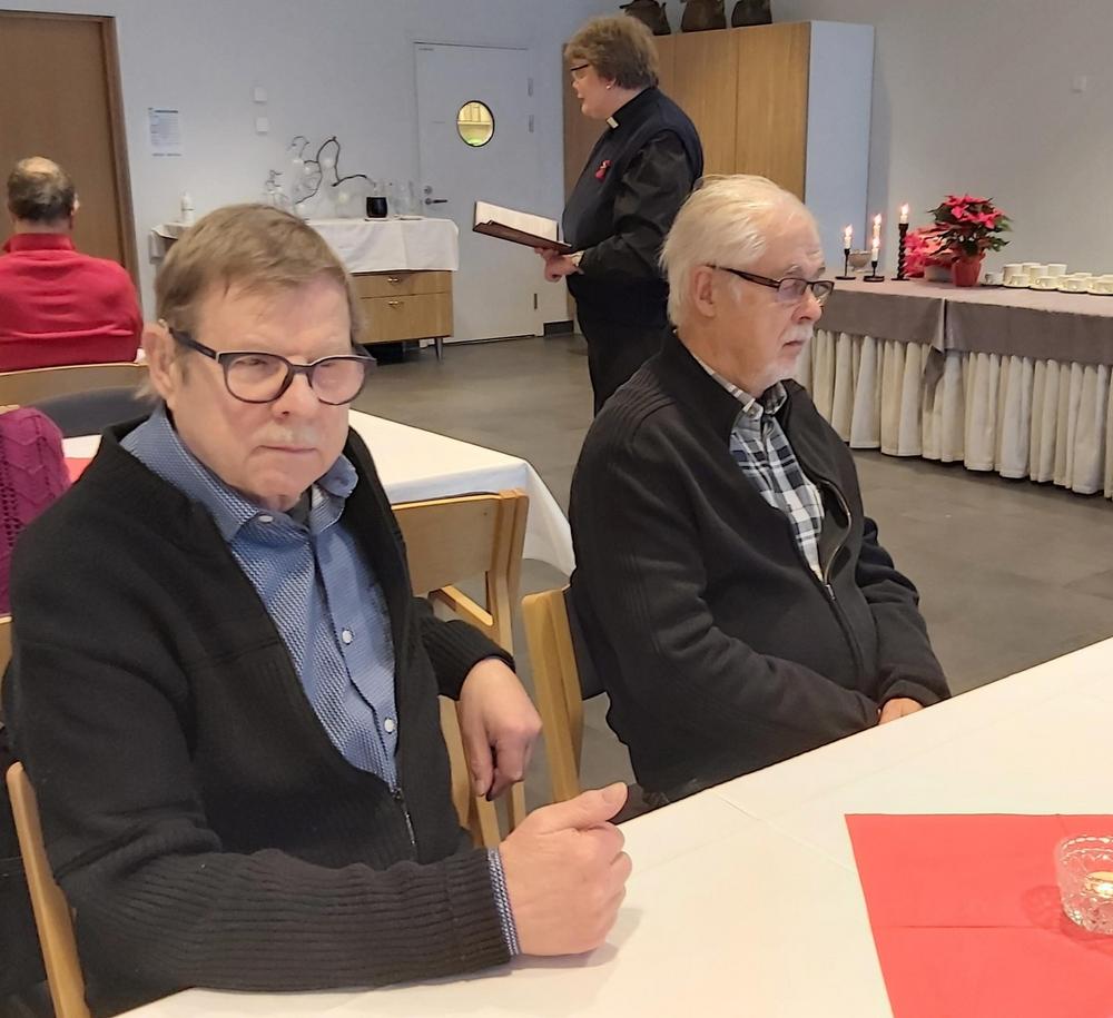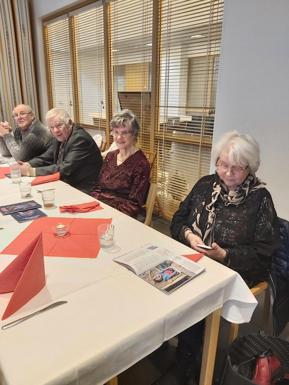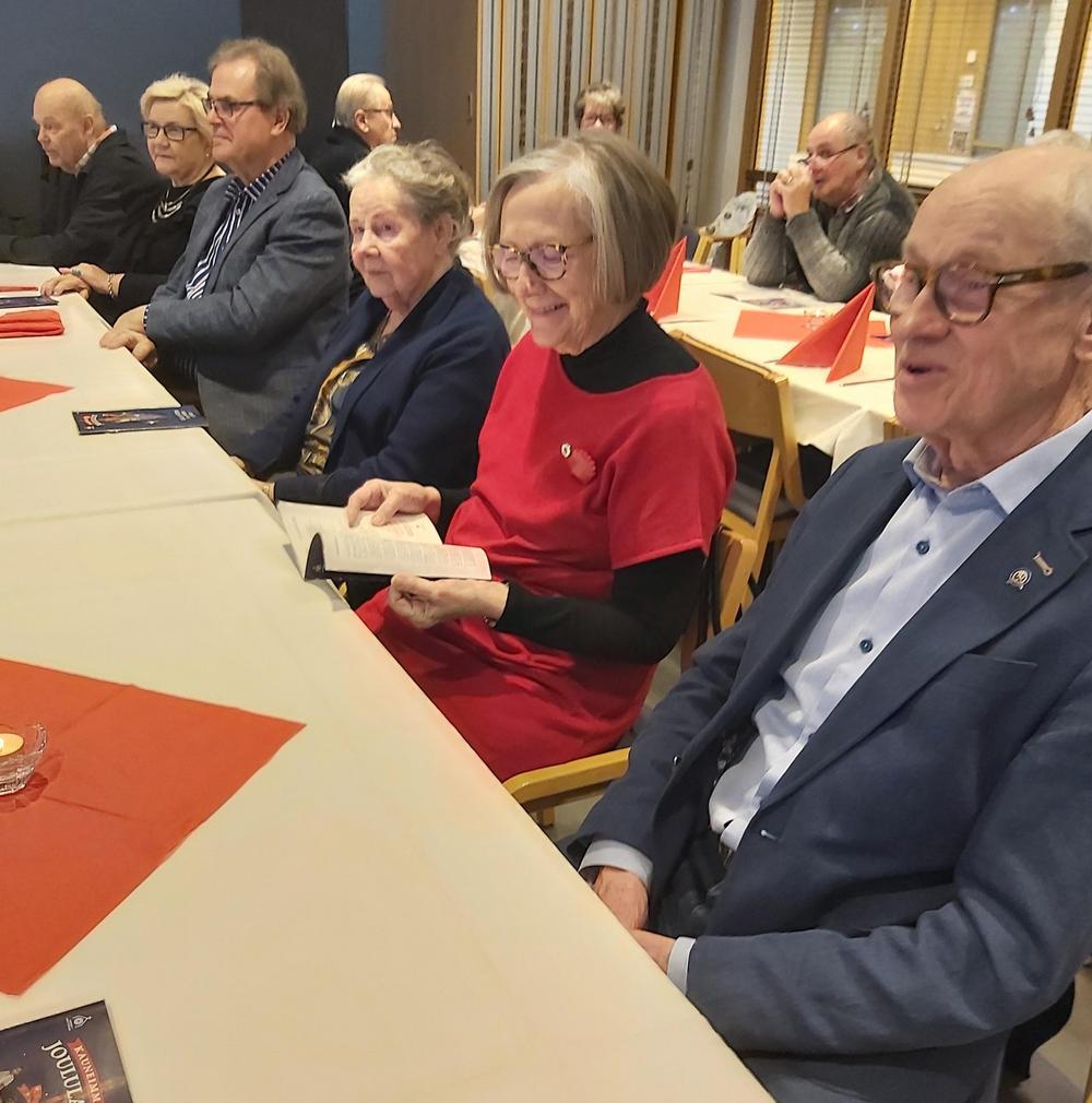Jouluruokailuun osallistui 32 senioria. Jouluruoka oli hyvää ja sitä oli montaa eri sorttia. Syömisen lisäksi lauloimme muutaman joululaulun; "Kun joulu on", "Sylvian joululaulu" ja "Sydämeeni joulun teen". Juteltiin jouluun liittyvistä asioista. Seurakunnan tervehdyksen toi kappalainen Katri Vuojus.