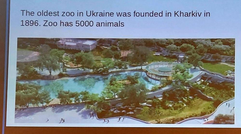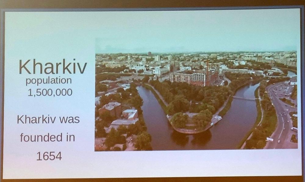 Natasha Moshenskaya toi ukrainalaisia leivonnaisia kahvin kanssa nautittavaksi ja kertoi niistä. Lisäksi hän näytti kuvia Harkovan alueelta. Kuvissa oli kauniita alueita sekä sodan aikaansaamia tuhoja.