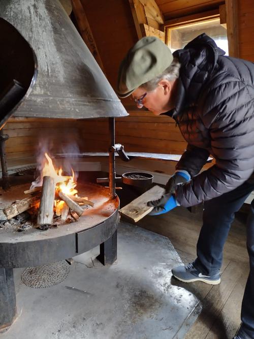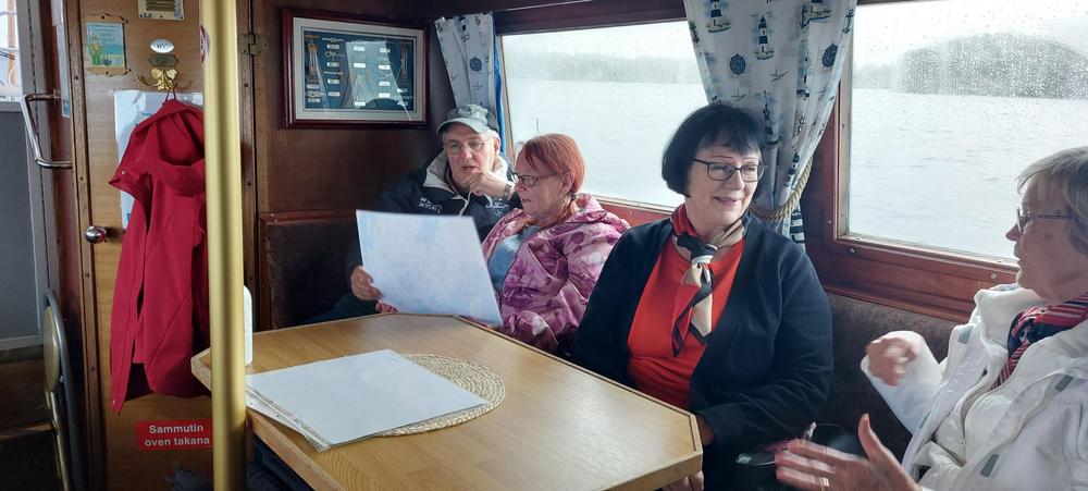 Makkaranpaiston ja kahvittelun lomassa lauloimme kotiseutuaiheisia lauluja ja pidimme leikkimielistä tietokilpailua.