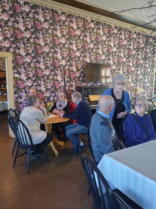 Museovierailun päätteeksi kävimme kahvilla Cafe Möljässä (Suolahden vanha asema). Ahti Ojanen kertoi aseman historiaa.